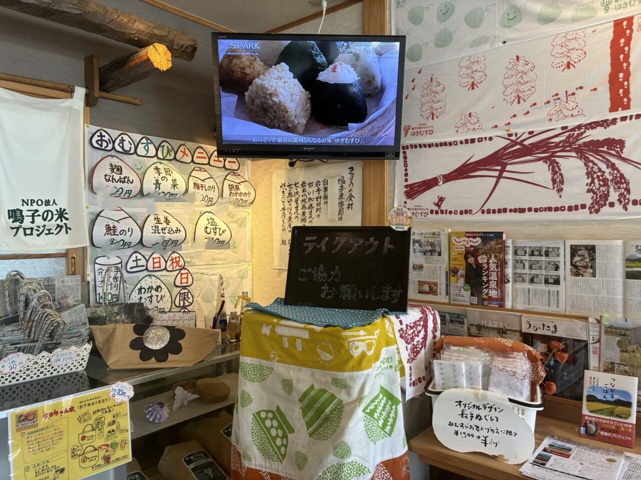 「むすびや」は、お店の方にお伺いしたところ2005年に始動した「鳴子の米プロジェクト」から生まれたお店とのことです。2009年の開店後、東日本大震災の被災により一時休止。2017年にはクラウドファンディングによる支援を受け、現在の場所で再スタートを切りました。